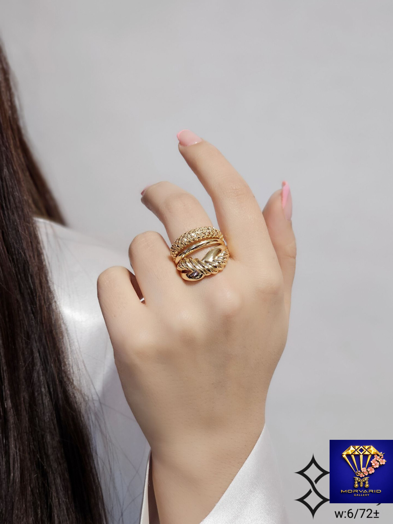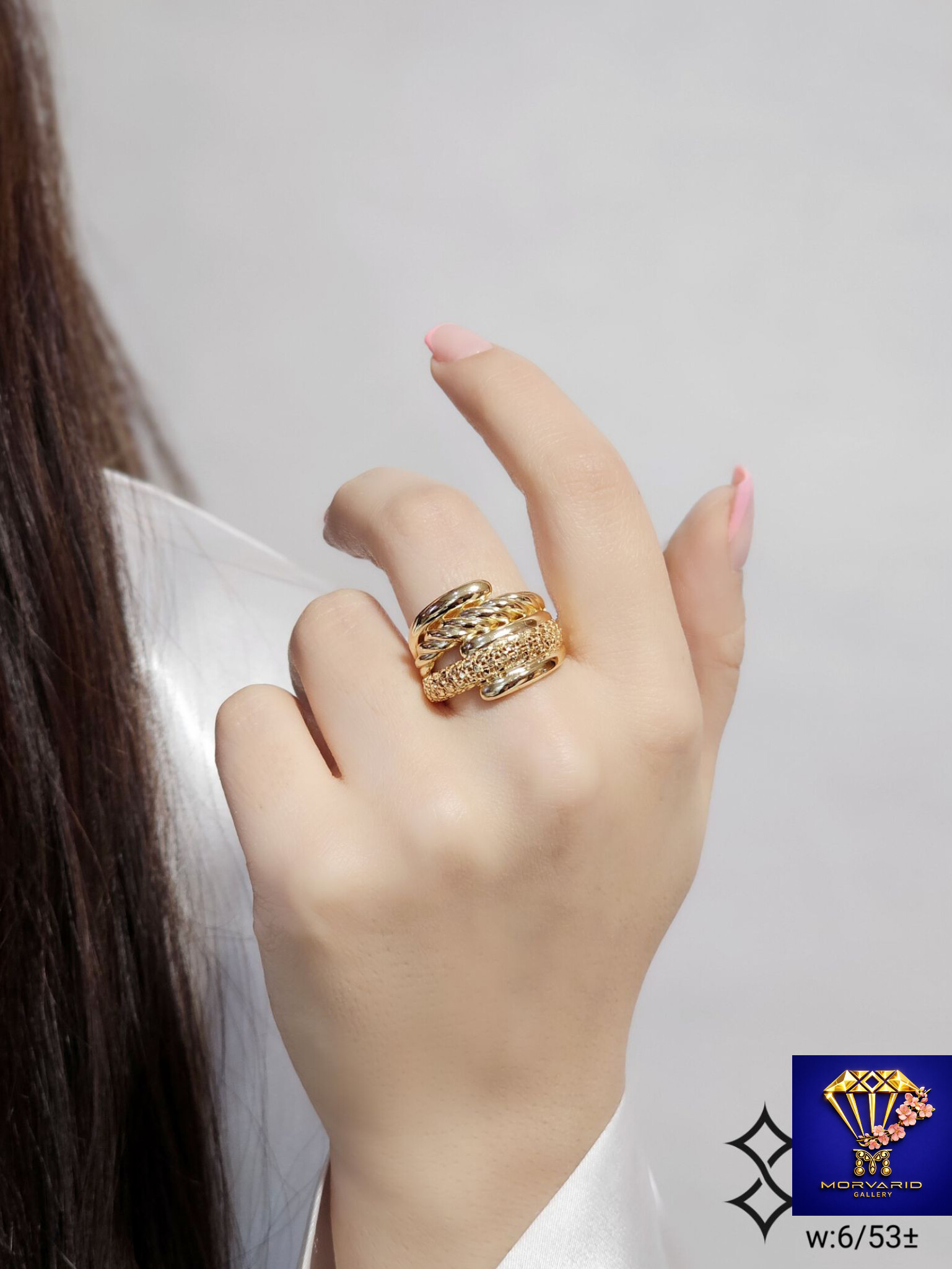 ناموجودانگشتر نقره مدل فیوژن آبکاری طلا زرد ۱۸ عیار
