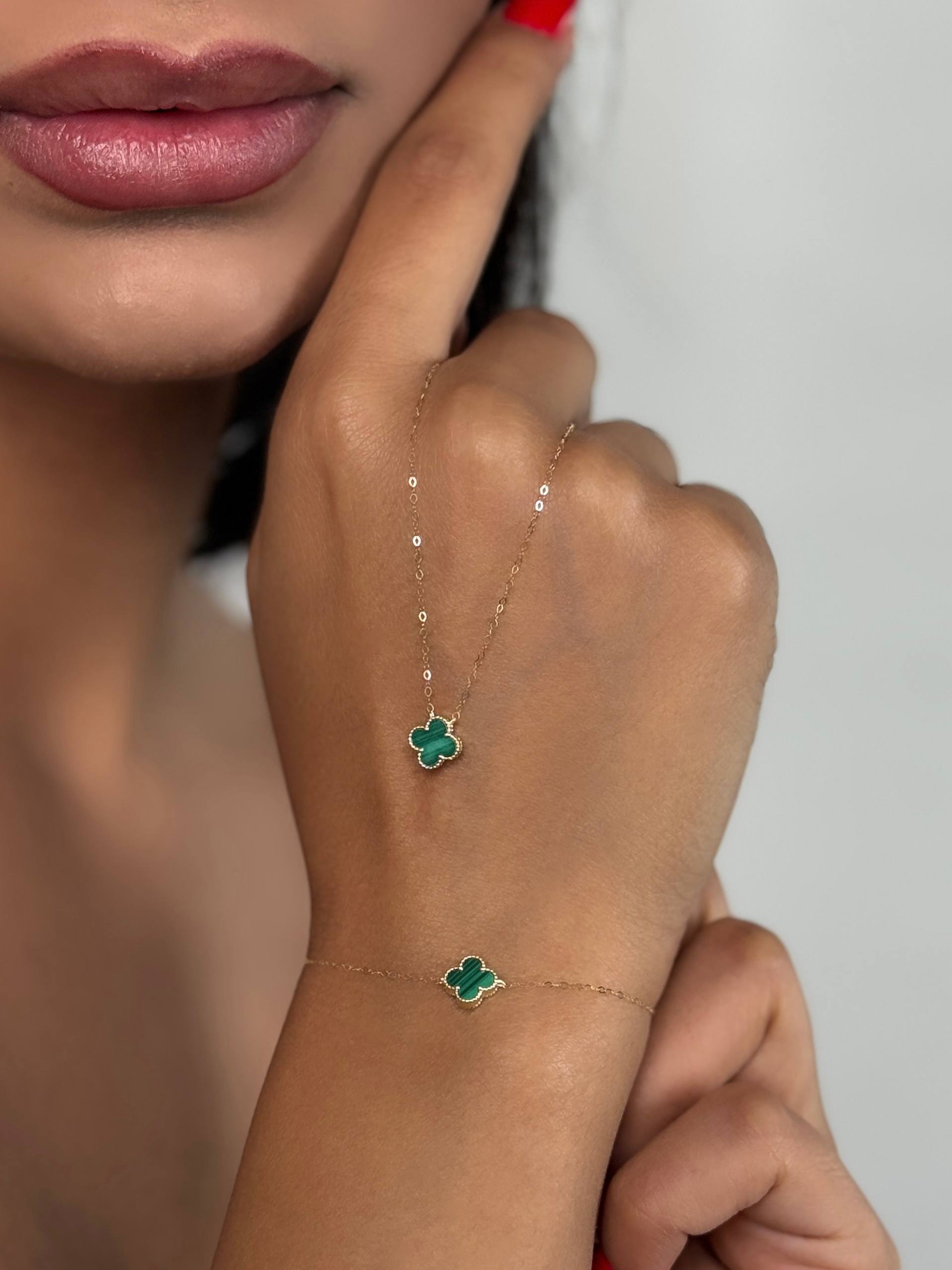 ناموجودست دستبند و گردنبند طلا ونکلیف سبز و سفید