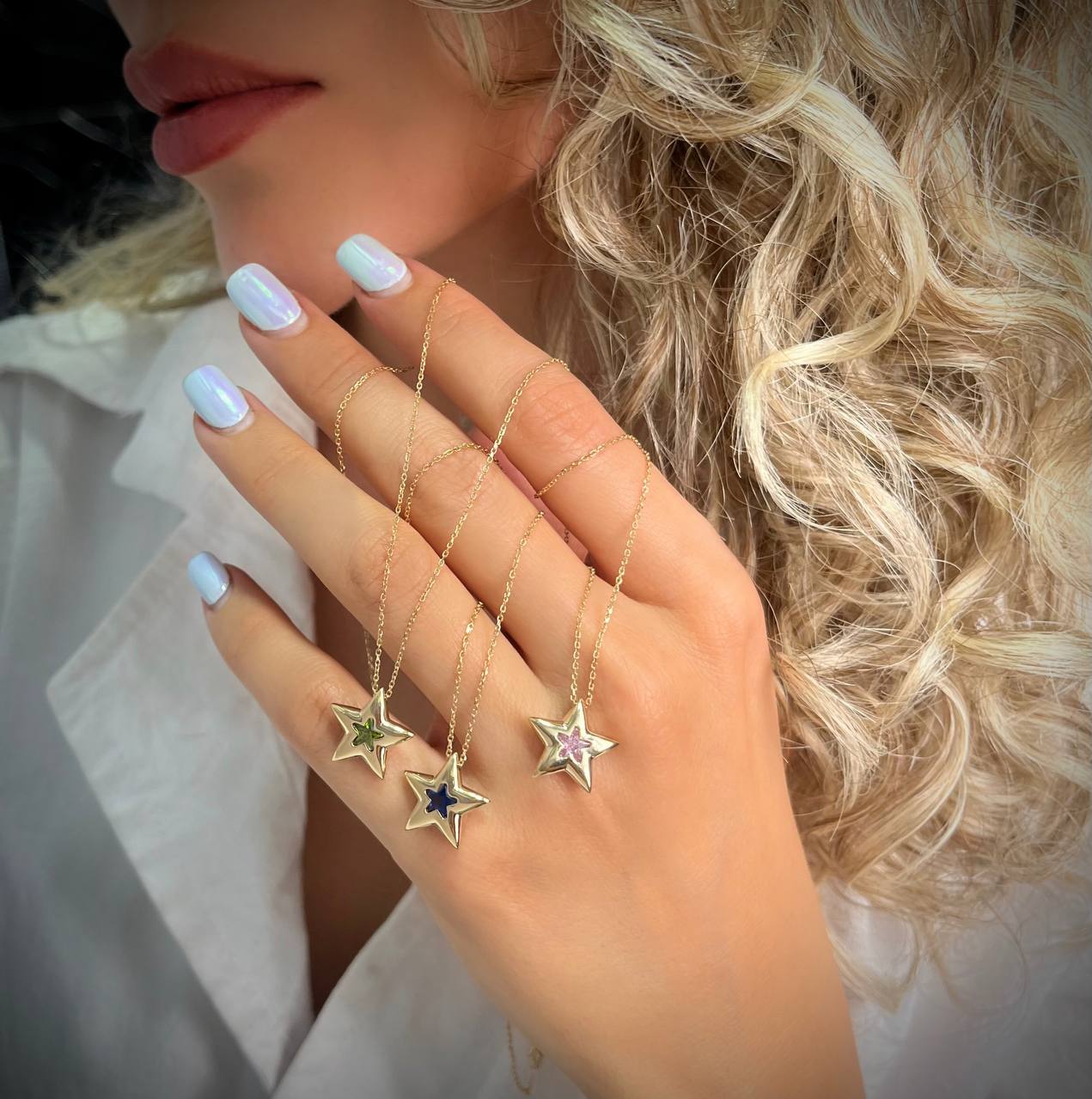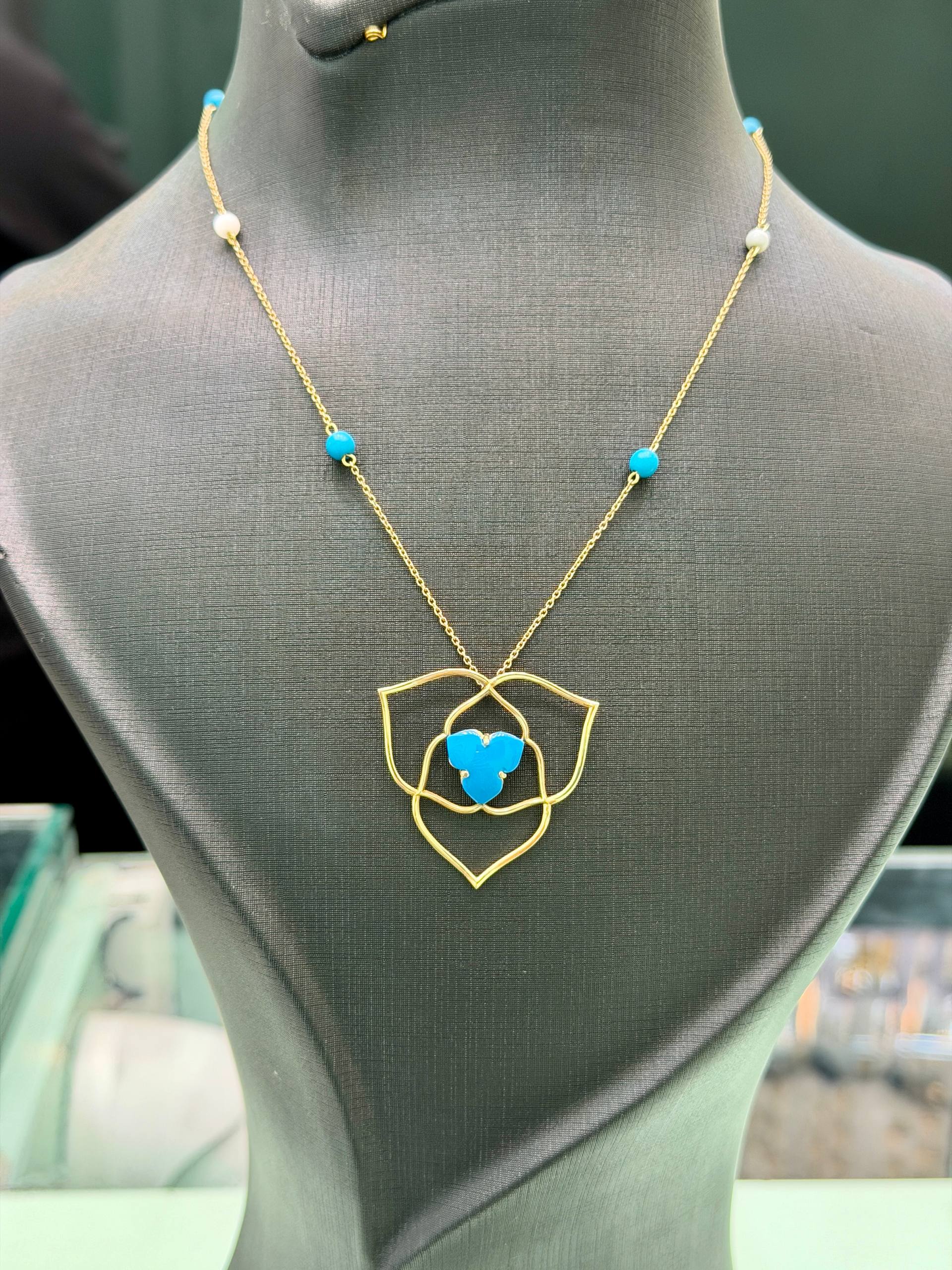 گردنبند طلا ونکلیف رنگی سنگ سوپر