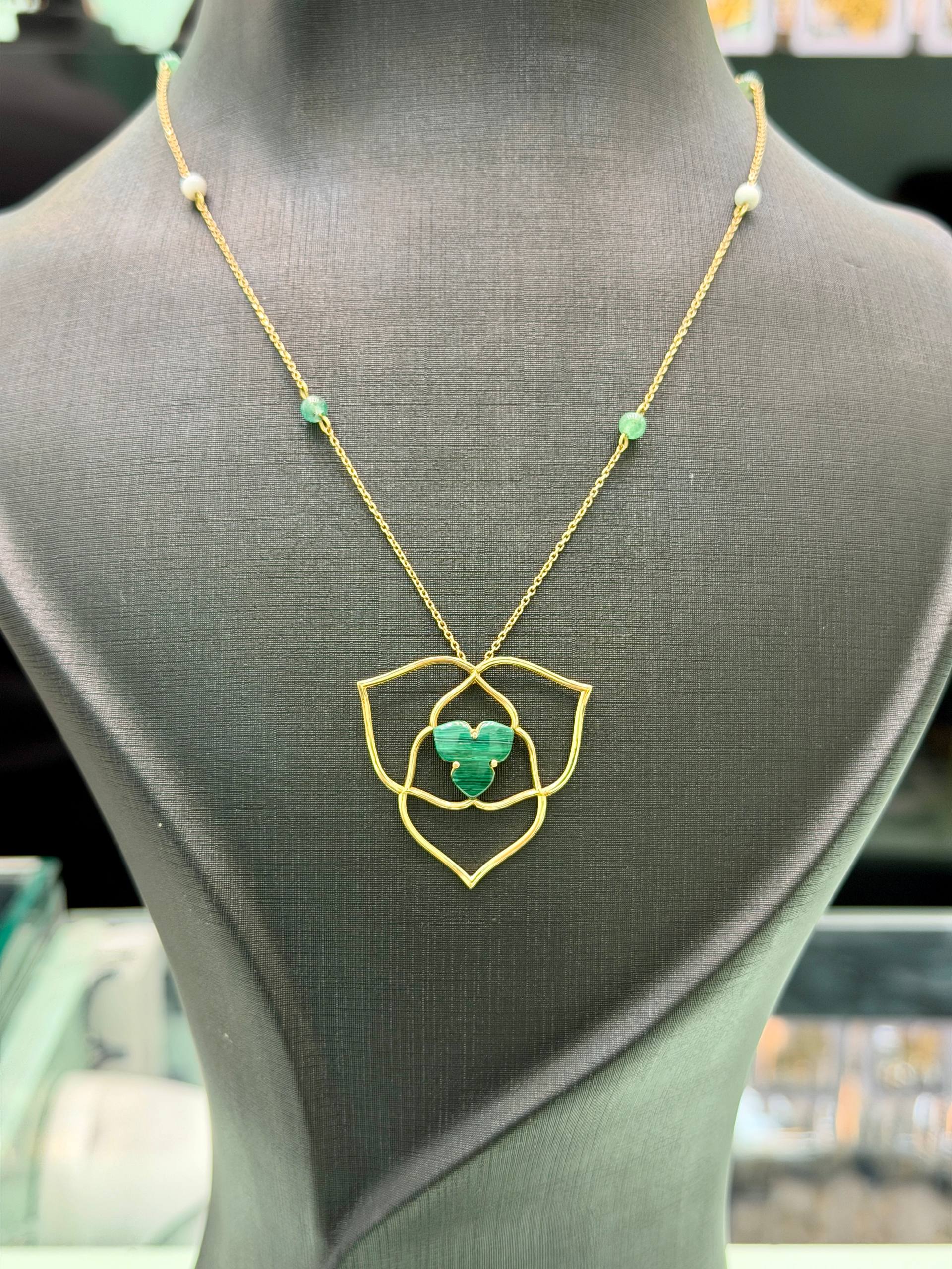 رو لباسی طلا لوکس با سنگهای مالاکیت طبیعی و ترمالین سبز
