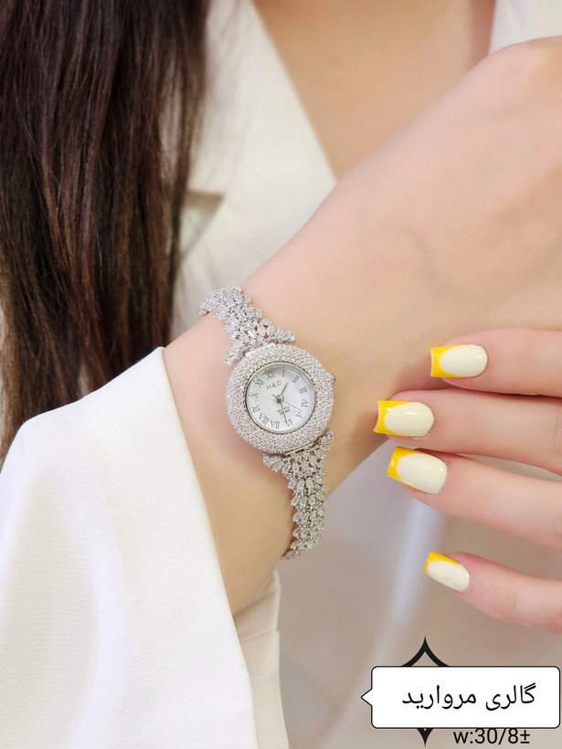 ساعت نقره جواهری زنانه روکش طلا سفید