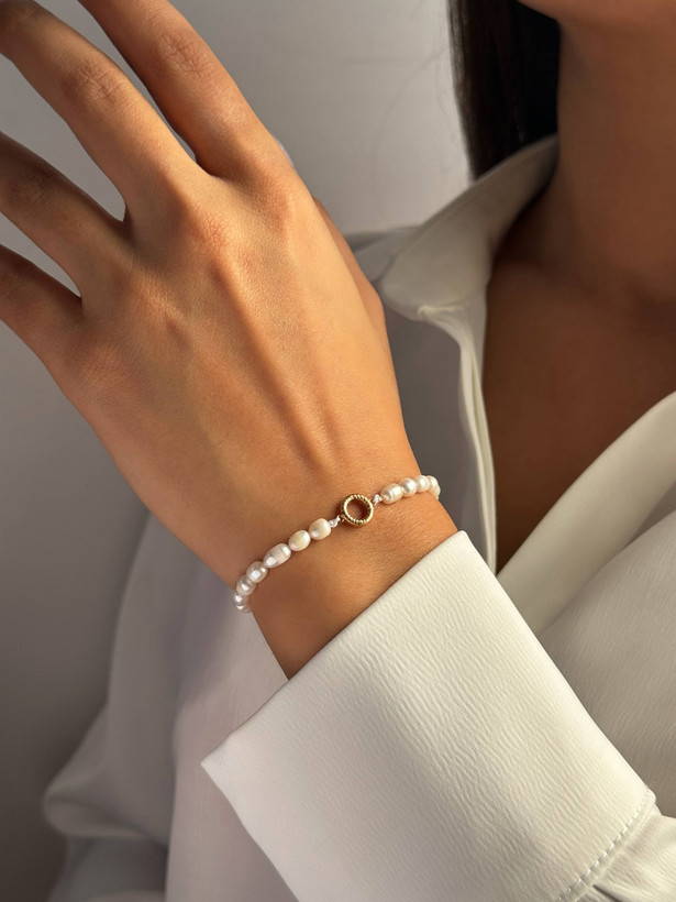 دستبند مروارید حلقه طلا ۱۸ عیار