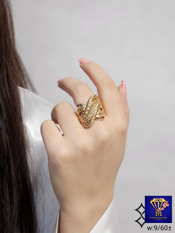 انگشتر نقره مدل فیوژن آبکاری طلا زرد ۱۸ عیار