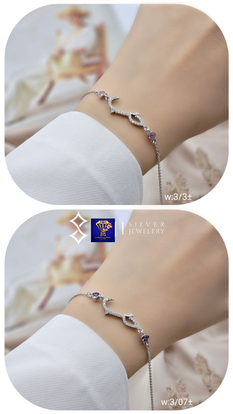 دستبند نقره جواهری آبکاری طلا