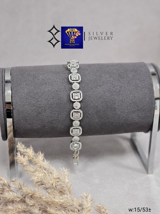 دستبند نقره جواهری آبکاری طلا