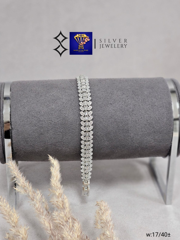 دستبند نقره جواهری آبکاری طلا