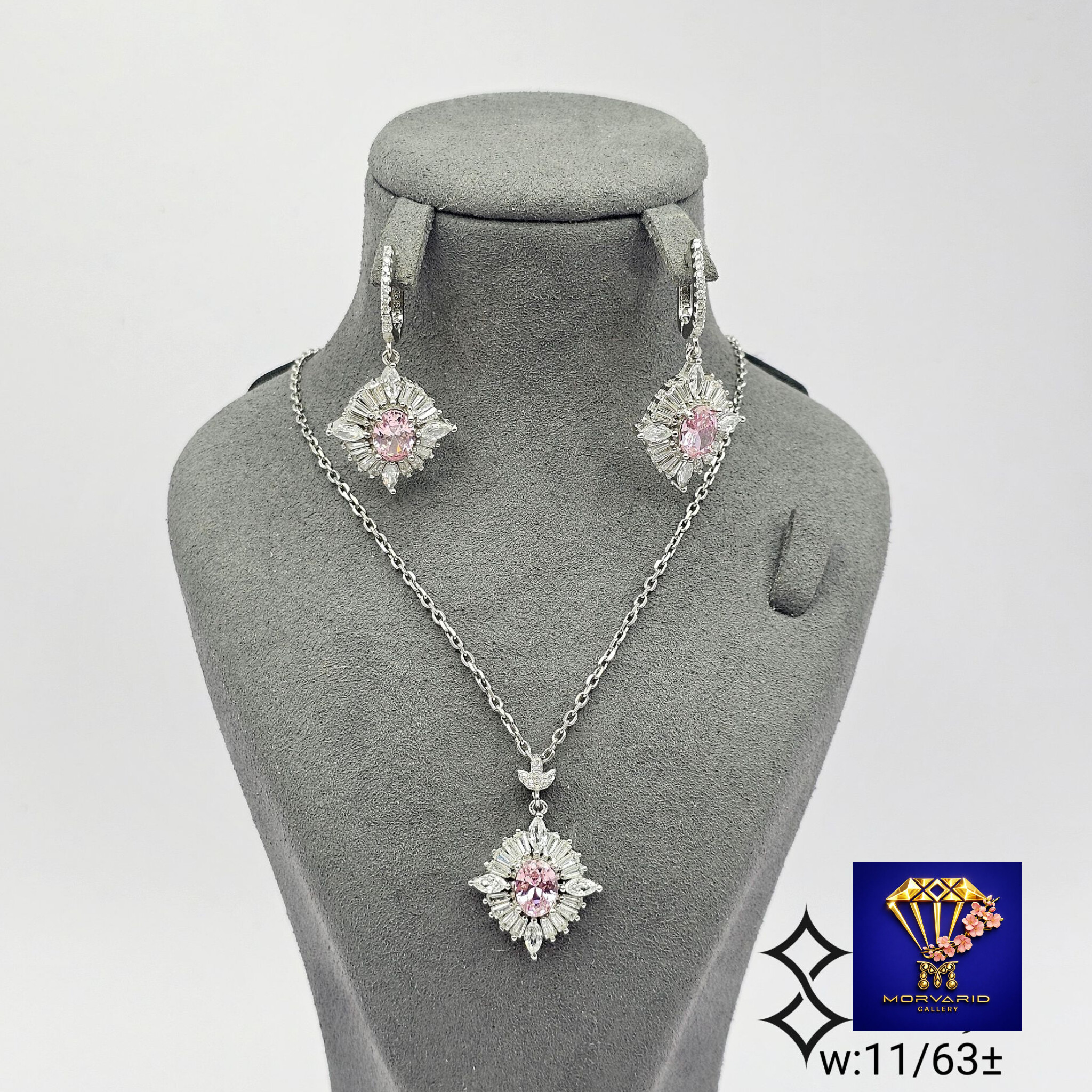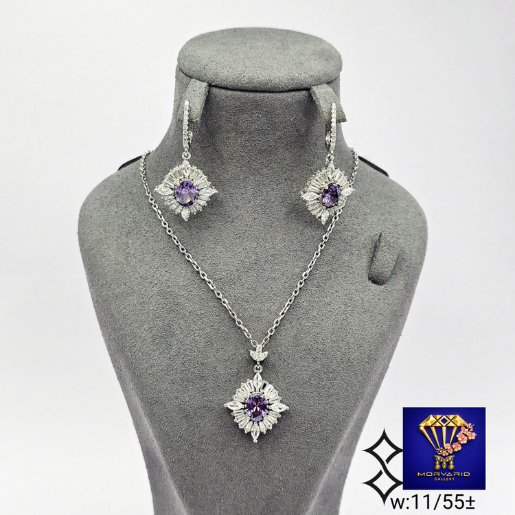 🪷نیم ست های نقره جواهری در رنگهای صورتی و بنفش
